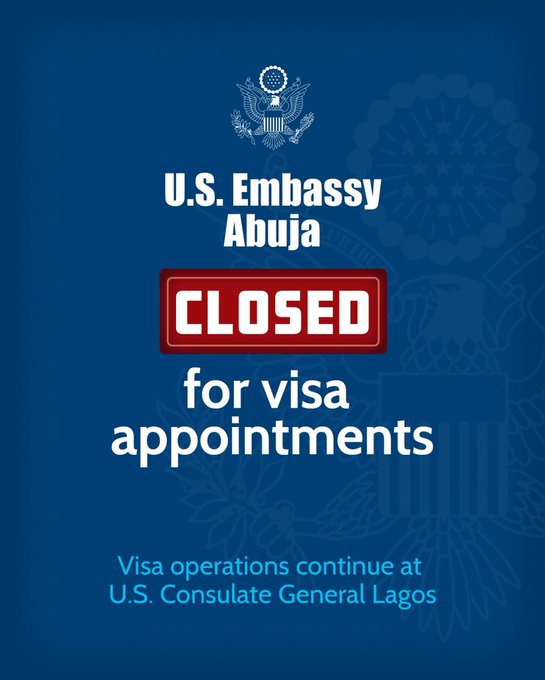 The United States Mission in Nigeria has announced the suspension of visa appointment services at its Embassy in Abuja, directing applicants to await further communication regarding rescheduled dates. The announcement was made on Thursday via the mission’s official X (formerly...