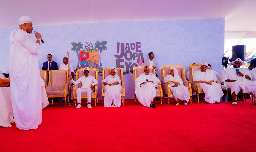 President Bola Ahmed Tinubu and Lagos State Governor Babajide Sanwo-Olu on Sunday took part in the traditional Ijade Opa Eyo procession, officially heralding activities for the iconic Eyo Festival in Lagos.